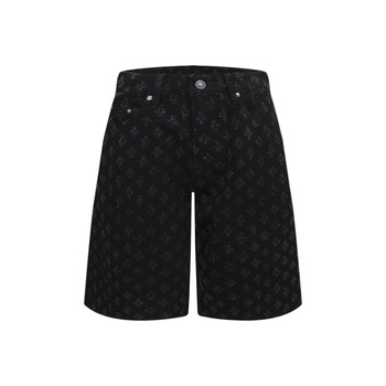 Trendy erkek köpüklü elmas çivili güzel havai fişek desen Denim pantolon gevşek düz bacak mavi yıkanmış yönlü kot